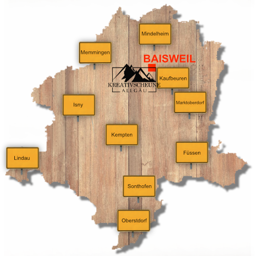 Baisweil ist ein beschauliches kleines Dorf im Allgäu zwischen den beiden Städten Kaufbeuren und Mindelheim mit einer idealen Verkehrsanbindung an die Autobahn A96 (10min Ausfahrt Mindelheim) sowie die beiden Bahnhöfe Mindelheim und Kaufbeuren (jeweils 15min Fahrt mit unserem Shuttle-Service).